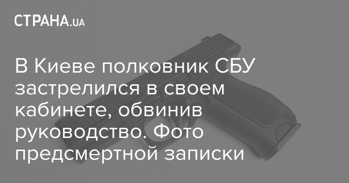 В Киеве полковник СБУ застрелился в своем рабочем кабинете.