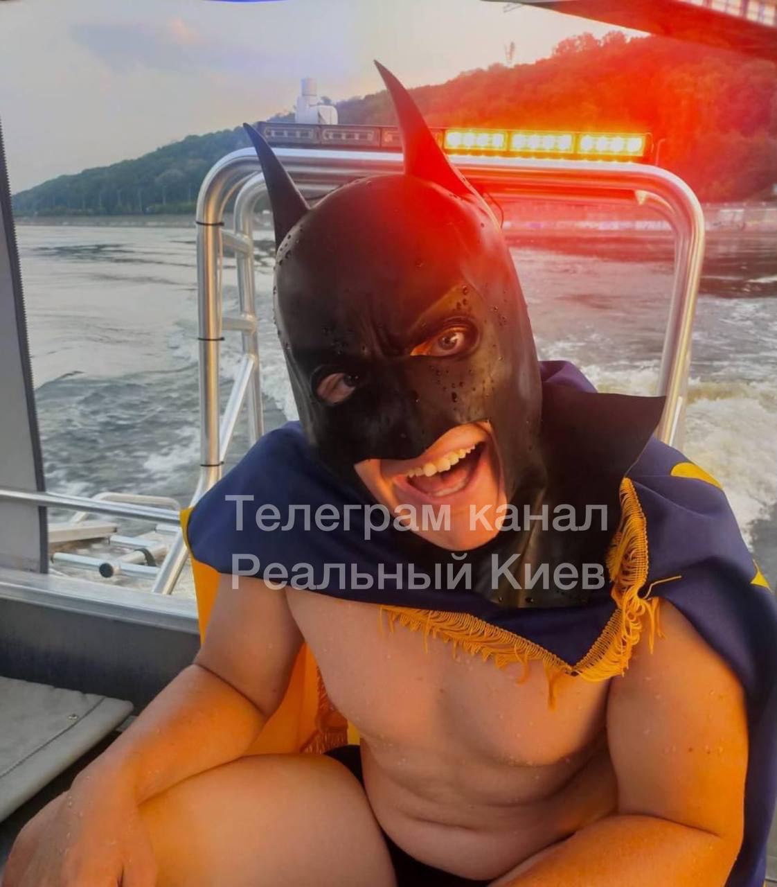 Копы достали "Бэтмена" из воды на катер, правоохранители установили его личность. Это иностранец 1995 года рождения, который хотел переплыть реку. Ради забавы мужчина надел маску супергероя, однако преодолеть течение оказалось ему не по силам.