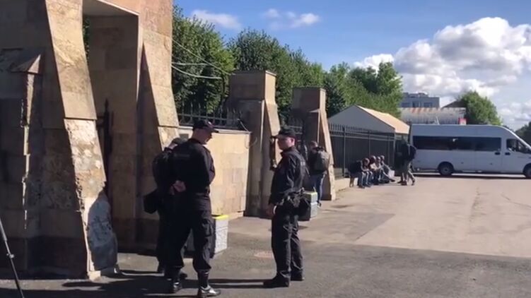 Тем временем на подъезде к Серафимовскому кладбищу Петербурга стоит пост ДПС, поблизости припаркован автобус Росгвардии, а на входе в кладбище дежурит полиция, которая пропускает людей через рамку металлоискателя.