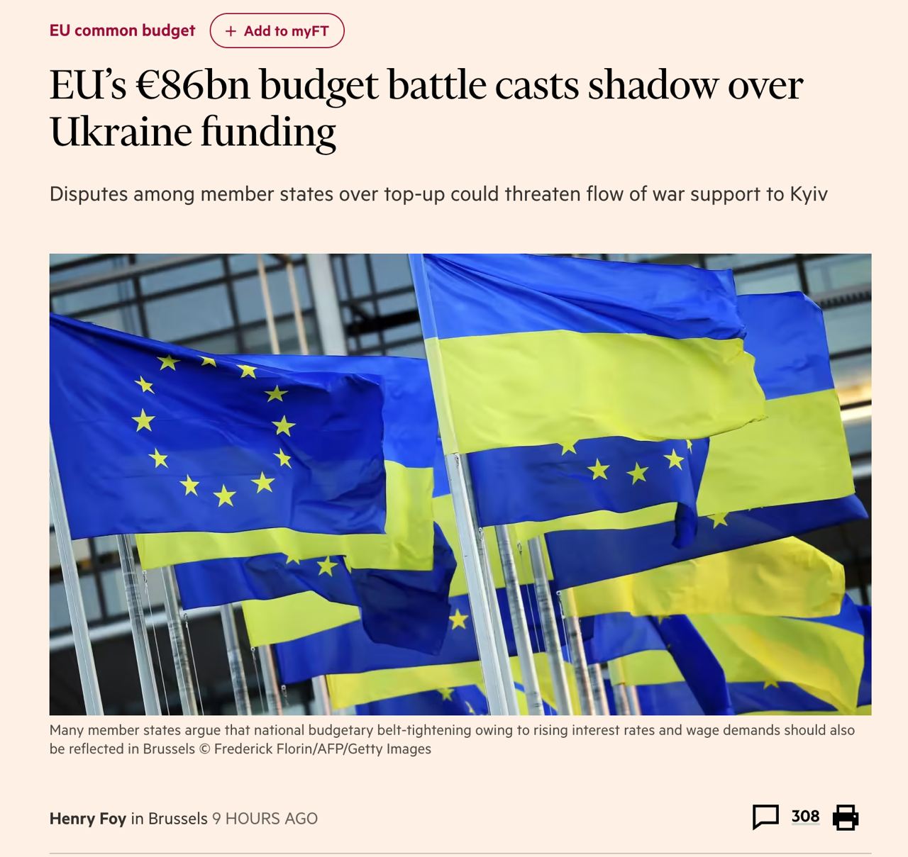 Брюссель объединил финансовую поддержку Украины (20 млрд евро) с требованиями по пополнению бюджета ЕС (66 млрд евро) для покрытия процентных расходов по долгам и повышения зарплат еврочиновников.