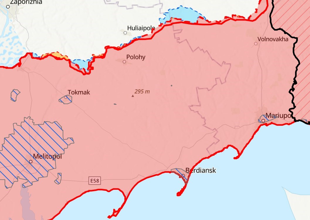 А пока карта взятых Украиной территорий на Запорожском фронте выглядит так (голубым отмечены участки, на которых продвинулось контрнаступление). Как видим, за три месяца кровопролитных боев отвоевать удалось лишь незначительный процент территории.