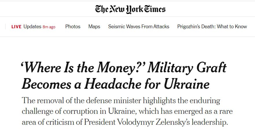 "Буквально на прошлой неделе советник США по национальной безопасности Джейк Салливан встретился с тремя высокопоставленными украинскими чиновниками, чтобы обсудить усилия по искоренению коррупции во время войны. Это связано с тем, что некоторые законодатели в Соединенных Штатах использовали взяточничество как аргумент в пользу ограничения военной помощи Украине", – сообщает The New York Times.