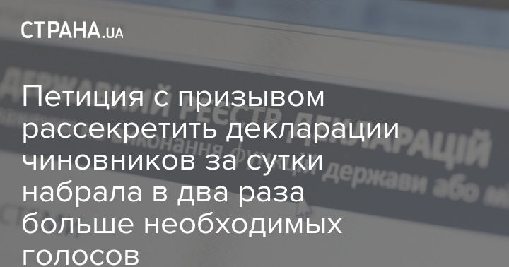 Петиция на сайте президента Украины с призывом открыть реестр деклараций украинских депутатов и чиновников меньше чем за сутки набрала 60 тысяч подписей. Хотя для ее рассмотрения Владимиром Зеленским было достаточно 25 тысяч.