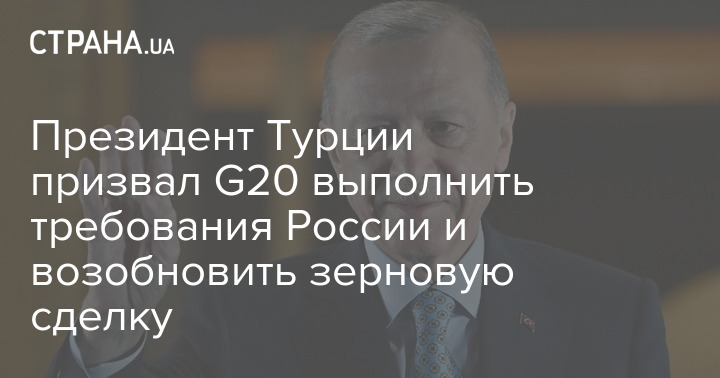 Президент Турции Эрдоган призывает G20 выполнить требования России и возобновить зерновую сделку.