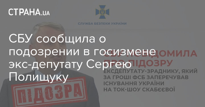 СБУ сообщила о подозрении в госизмене экс-депутату Сергею Полищуку