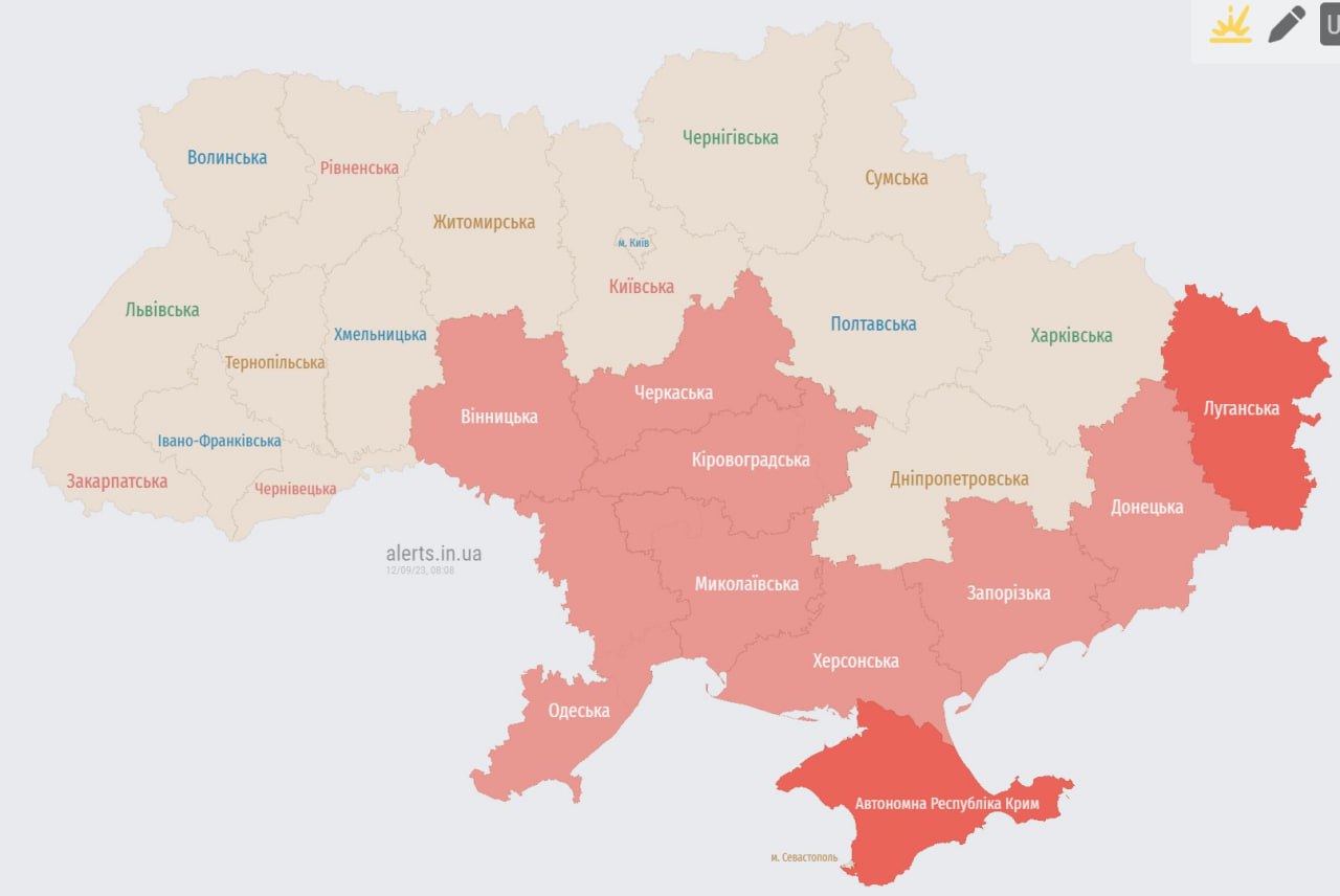 09.08 Тревога на юге и в центральных областях. Угроза применения баллистических ракет.