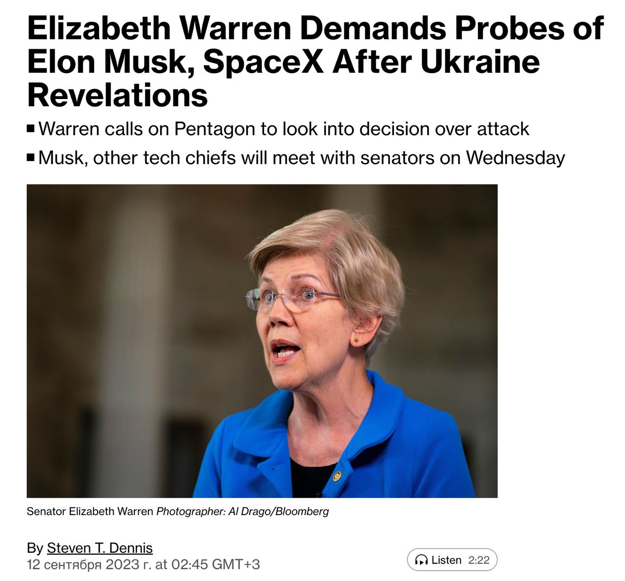 10.02 В США продолжается наезд на Илона Маска из-за его отказа включить Starlink в Крыму, чтобы позволить Украине атаковать российский флот.