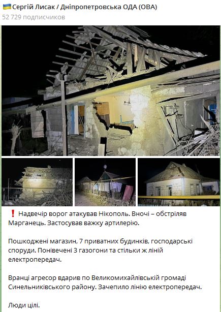 К вечеру 11 сентября враг атаковал Никополь. Ночью – обстрелял Марганец. Применил тяжелую артиллерию.