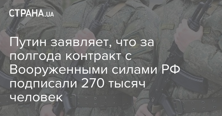 Президент России Владимир Путин утверждает, что за последние 6-7 месяцев контракт с Вооруженными силами РФ добровольно подписали 270 тысяч человек.