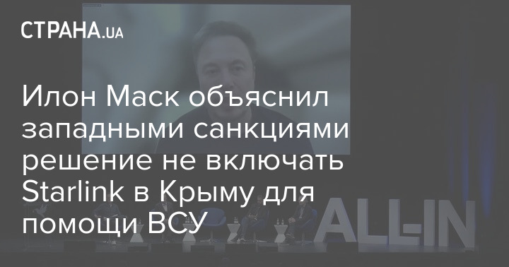 "Причина, по которой Starlink был выключен, в действительности была в том, что США ввели санкции против России. Они охватывают Крым, и нам не разрешено запускать соединение", — заявил Маск, выступая на технологической конференции All-In Summit.
