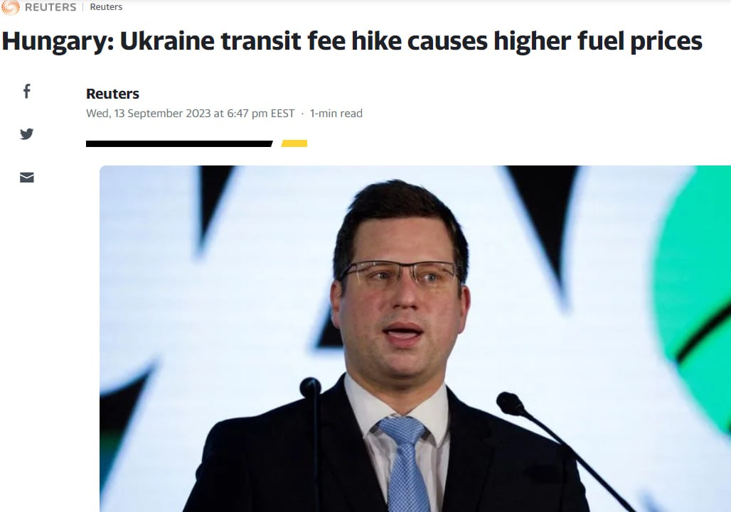 Правительство Венгрии возложило ответственность за высокую инфляцию в стране на Украину, которая в пять раз увеличила плату за транзит российской нефти по трубопроводу "Дружба".