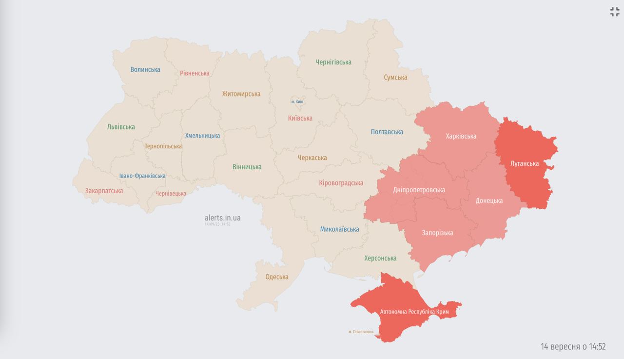 14.54 Воздушные силы предупреждают об угрозе применения баллистического оружия по областям, где объявлена тревога.