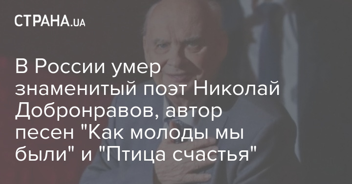 В России скончался знаменитый поэт-песенник и супруг композитора Александры Пахмутовой Николай Добронравов. Ему было 94 года.