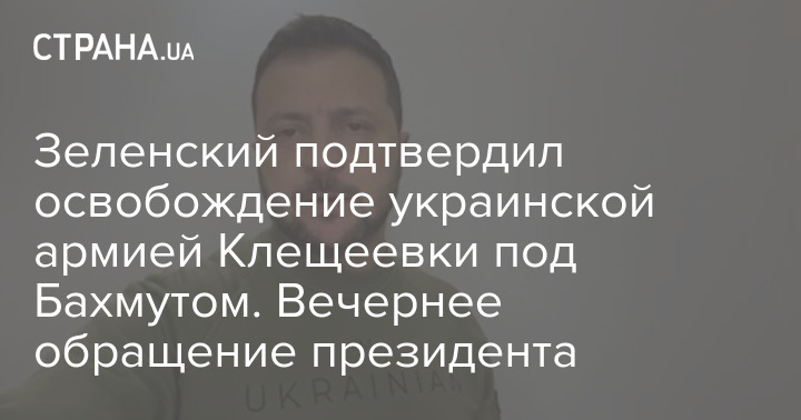 Зеленский подтвердил освобождение украинской армией Клещеевки под Бахмутом. Вечернее обращение президента