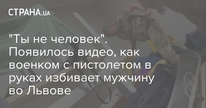 На видео мужчина в военной форме с пистолетом в руках избивает гражданского со словами: "За@башу на@уй", "ты не человек", "в багажник, поехали, закопаю и никто не найдет".