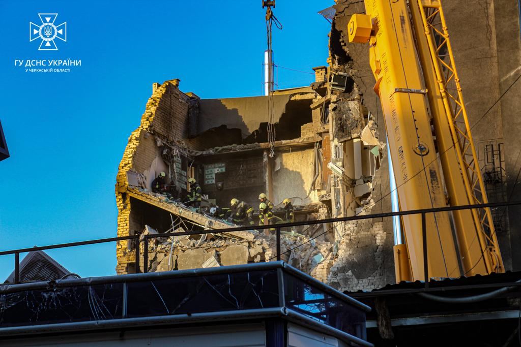 10.07 В Черкассах всю ночь разбирали завалы на месте прилета в отель, сообщает МВД.