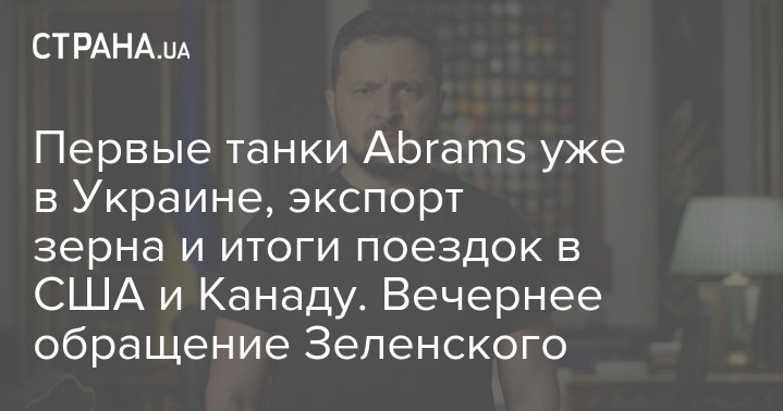 Первые танки Abrams уже в Украине, экспорт зерна и итоги поездок в США и Канаду. Вечернее обращение Зеленского