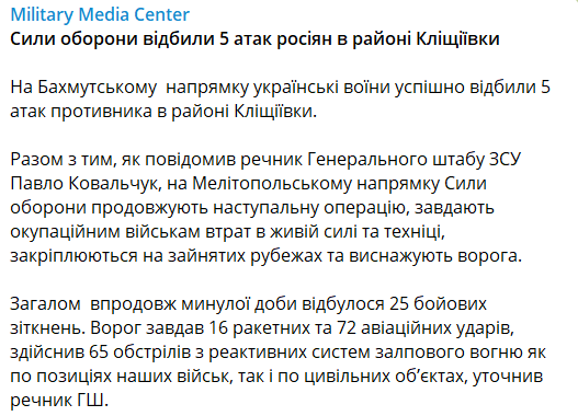 ВСУ продолжают наступление на Мелитопольском направлении, наносят РФ потери и закрепляются на занятых рубежах.
