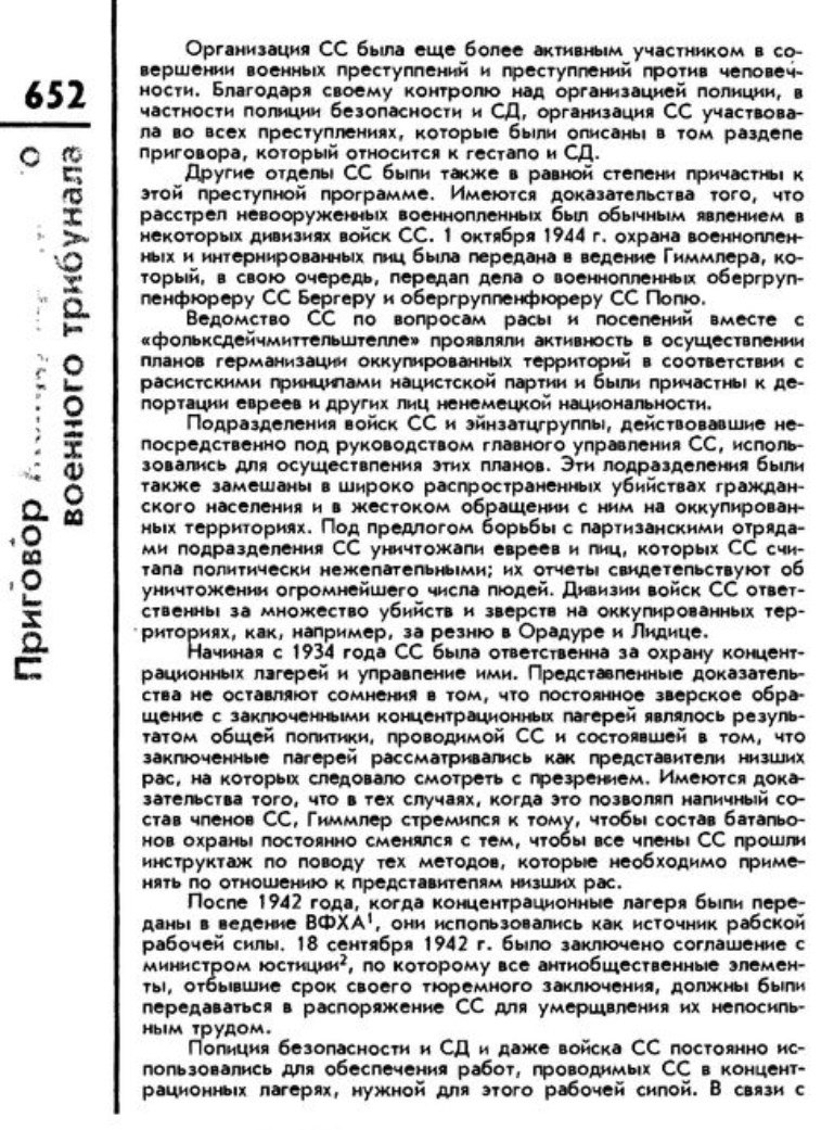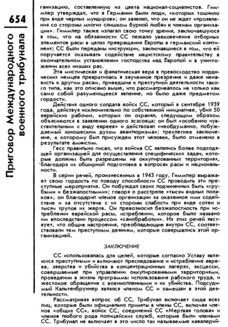 В то же время, как можно увидеть из текста приговора, в этом вердикте осуждается вся СС как организация, без деления на составные части.