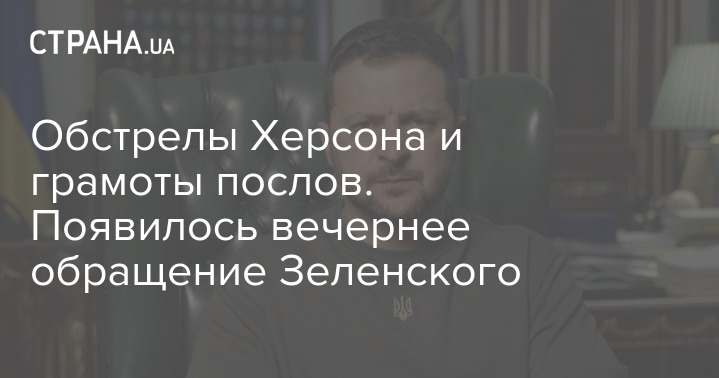 Обстрелы Херсона и грамоты послов. Появилось вечернее обращение Зеленского