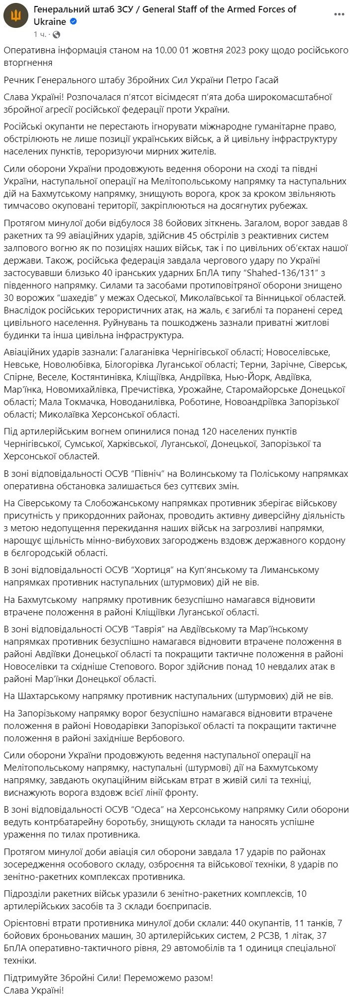 Война в Украине идет уже 585-й день. Мы следим за последними новостями и ключевыми событиями 1 октября 2023 года в обновляемом онлайне.