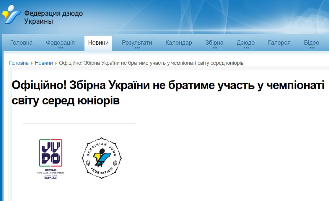 Об этом заявила Федерация дзюдо Украины на своем сайте.