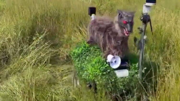 В Японии запускают на поля роботов-волков с красными глазами, чтобы отпугивать медведей и других диких животных.