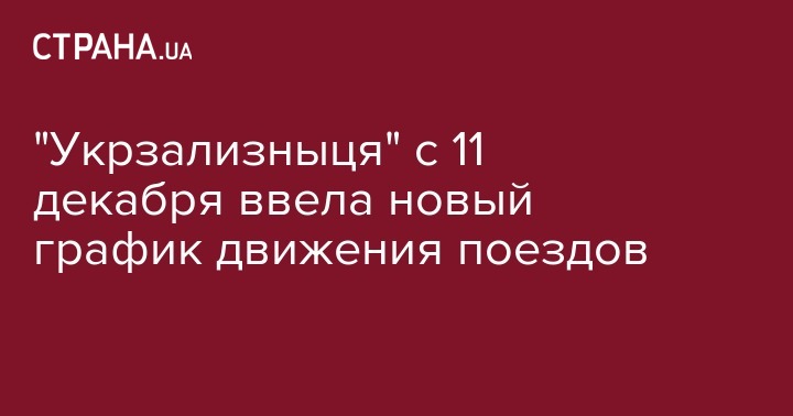 С сегодняшнего дня, 11 декабря, в Украине начал действовать новый график движения поездов. Об этом сообщает пресс-служба "Укрзализныци".