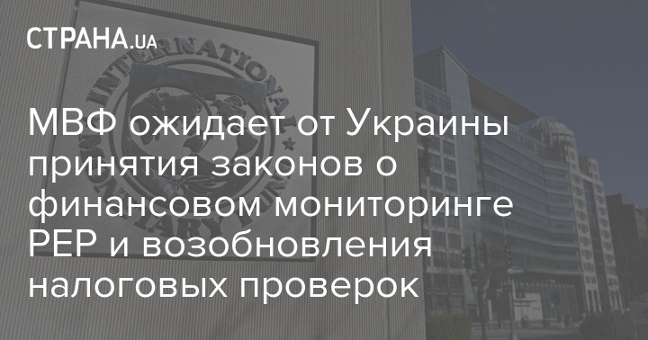 Международный валютный фонд (МВФ) ожидает от Украины принятия законов о финансовом мониторинге политически значимых лиц (PEP) и возобновления налоговых проверок.
