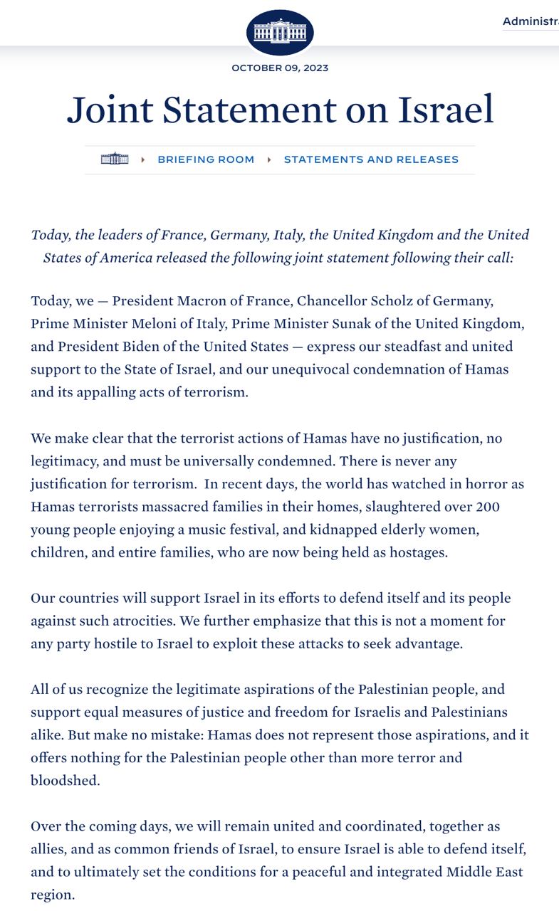 14.19 Несколько международных заявлений вокруг ситуации в Израиле, куда вторгся ХАМАС.
