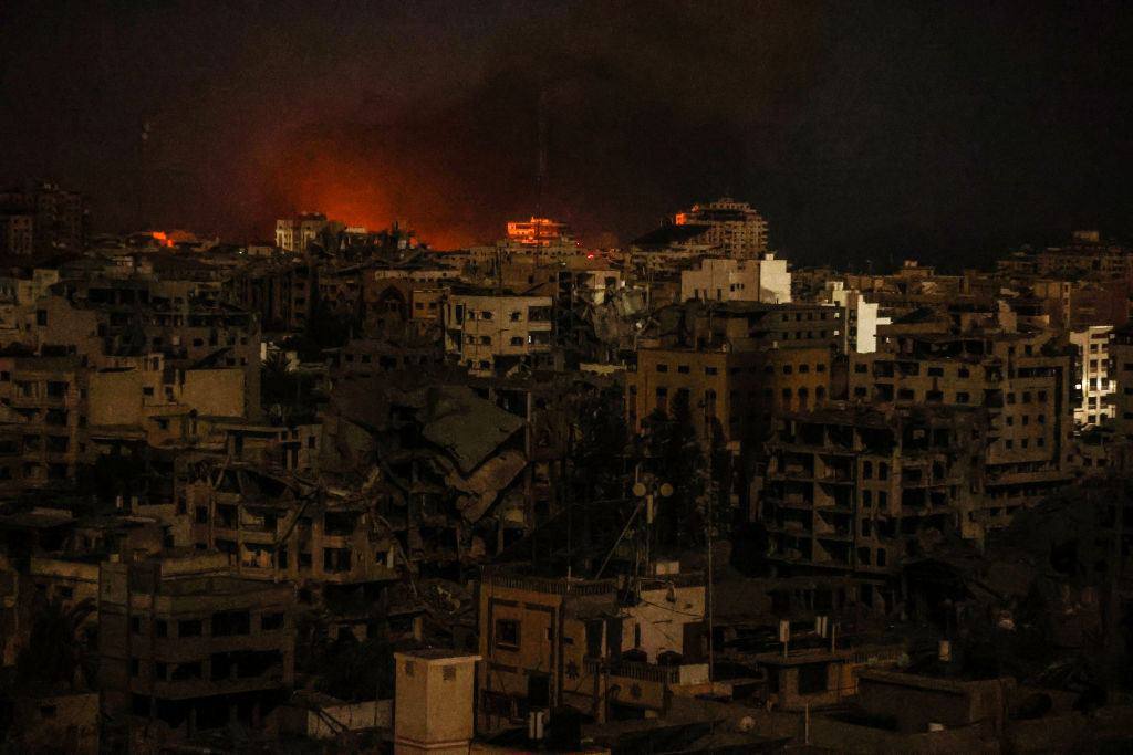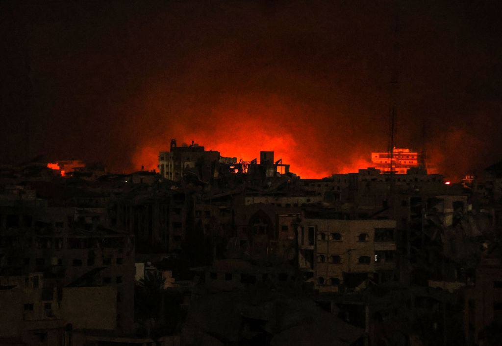 00:30 Пожары после взрывов в районе Тель-эль-Хава на юго-западе сектора Газа.