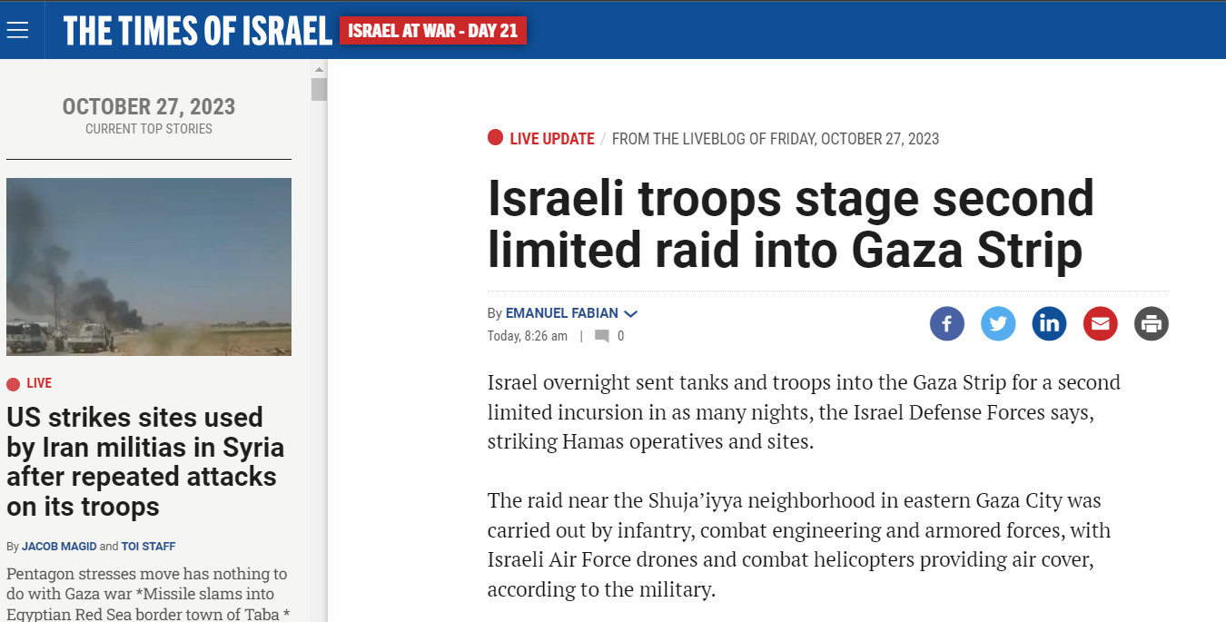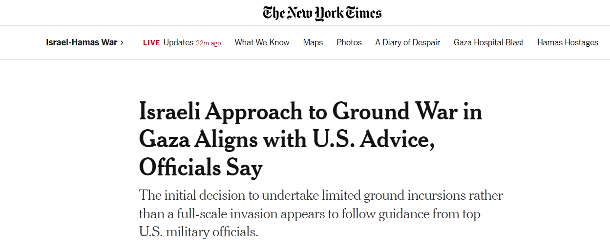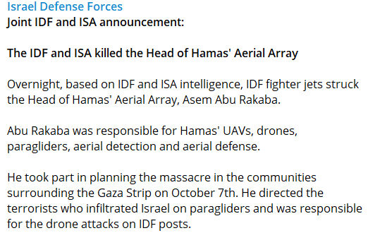 Также в СМИ появился комментарий неназванного израильского чиновника, который заявляет, что «план Израиля по уничтожению ХАМАС выполнен сейчас на 10%».