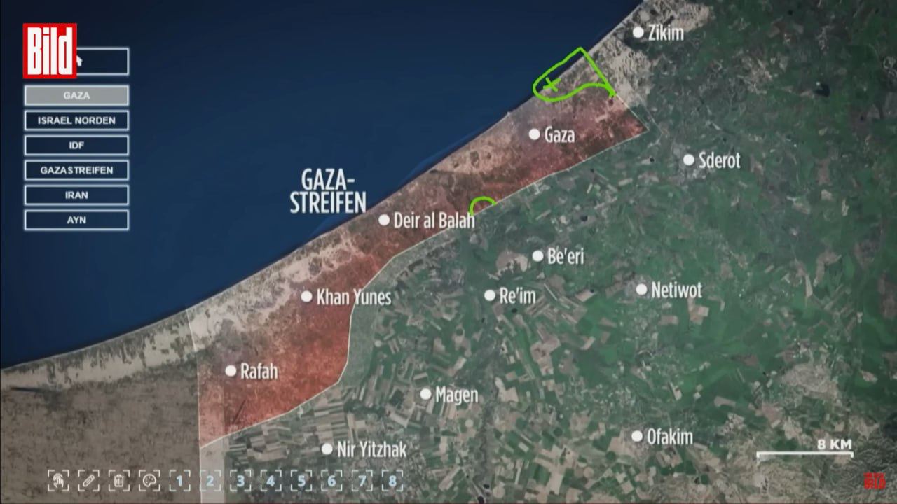 13.52 Карта боев и захваченных боевиками ХАМАС территория на юге Израиля около Сектора Газа.