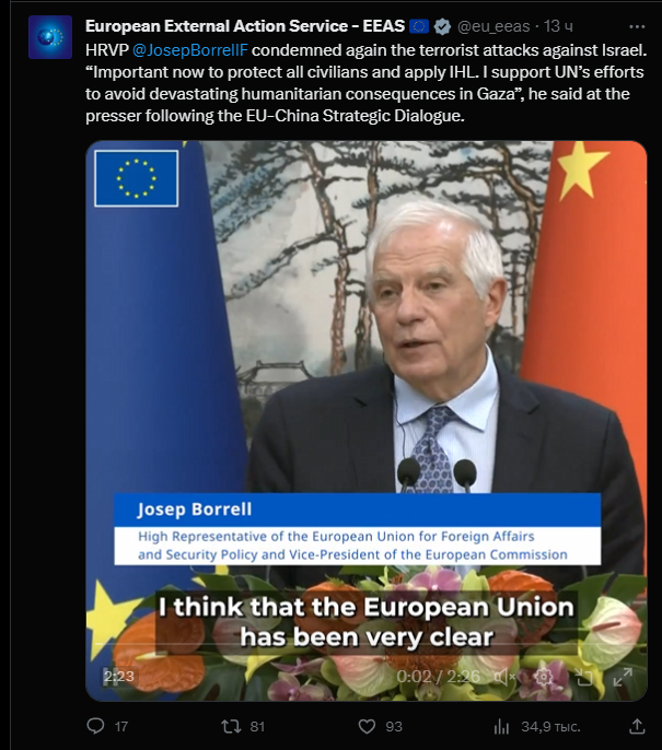 Глава Европейского союза Жозеп Боррель считает неприемлемой эвакуацию миллиона жителей Газы в соответствии с предупреждением Израиля.