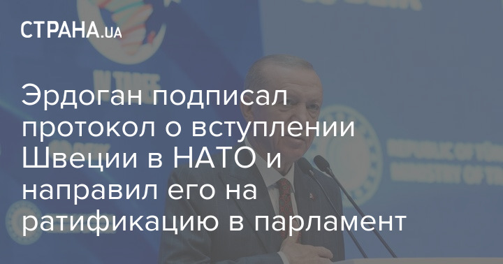Президент Турции Реджеп Тайип Эрдоган подписал протокол о вступлении Швеции в НАТО и направил его на ратификацию в парламент страны.