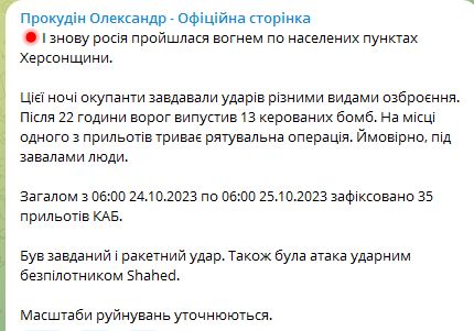 Ночью 25 октября россияне ударили по Херсонской области разными видами вооружения.