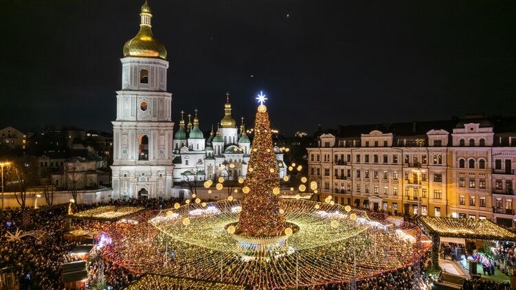 В прошлом году главную елку страны установили на Софийской площади в Киеве, ее зажгли 17 декабря. Ель была искусственная, 12 метров в высоту - в три раза ниже, чем в предыдущие годы. На ее верхушке установили трезубец вместо традиционной звезды. Официально открыли ее два дня спустя, 19 декабря, на день святого Николая.