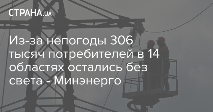 "Из-за неблагоприятных погодных условий обесточивались 1045 населенных пунктов в 14 областях - Винницкой, Волынской, Днепропетровской, Житомирской, Закарпатской, Ивано-Франковской, Киевской, Львовской, Ровенской, Сумской, Тернопольской, Хмельницкой, Черновицкой и Черниговской. Всего без света оставались 306 тысяч потребителей", - говорится в сообщении.