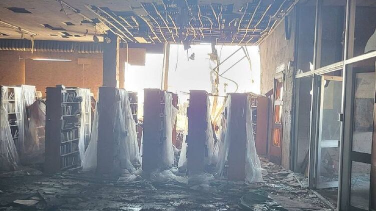 Также сообщается, что пострадала библиотека. В ней начался пожар, здание существенно повреждено.