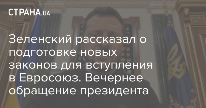 Зеленский рассказал о подготовке новых законов для вступления в Евросоюз. Вечернее обращение президента