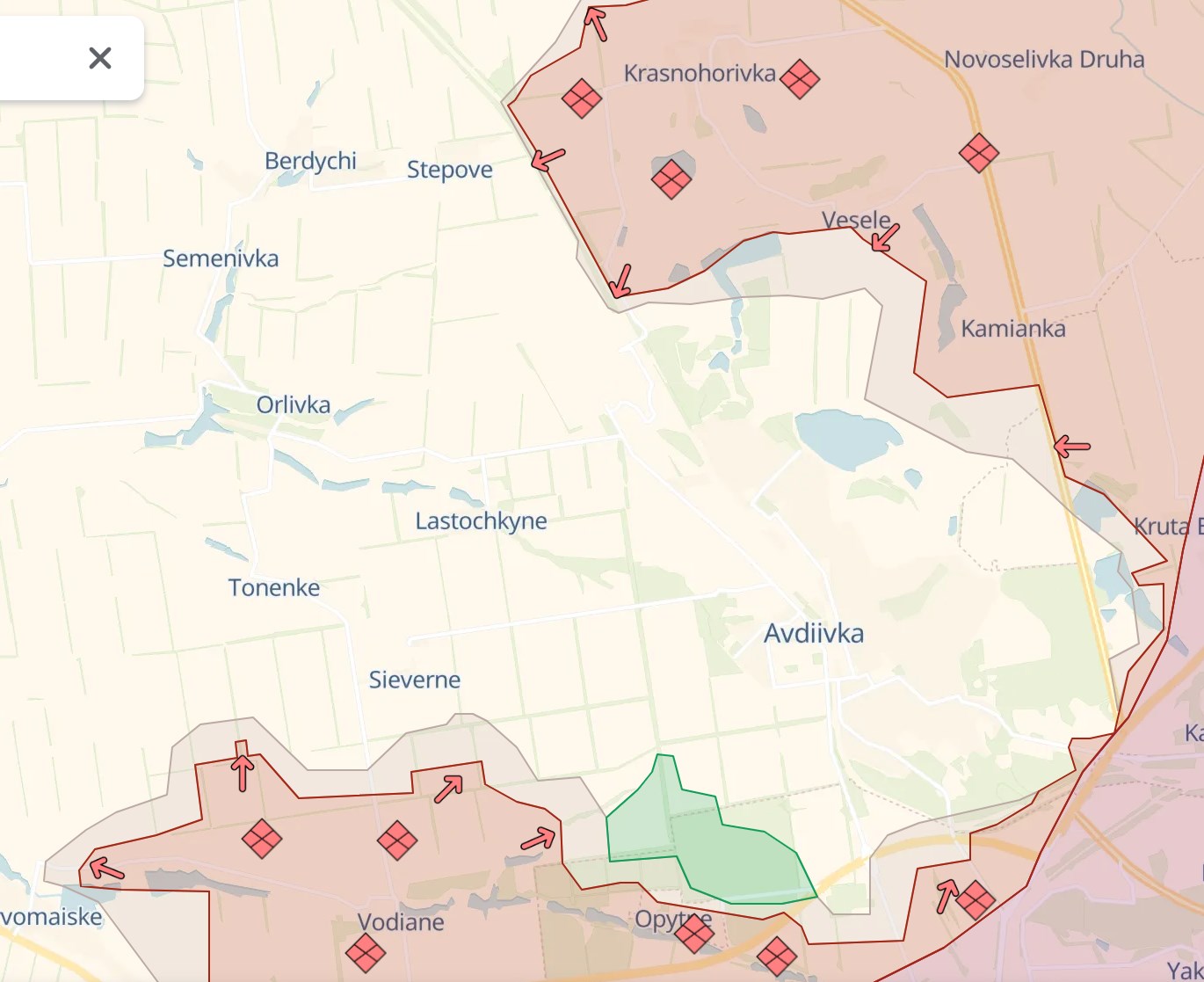 Украинские паблики сообщают, что под Авдеевкой продолжаются бои средней интенсивности без существенных изменений. Российские военные телеграм-каналы пишут о контратаках ВСУ на севере в районе железной дороги и о наступлении РФ с юга в направлении микрорайона "Химик".