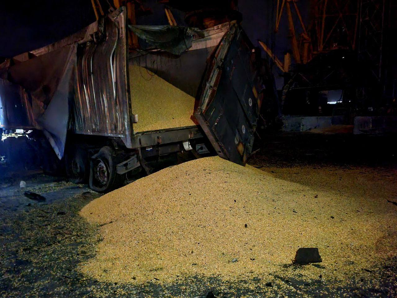 Попаданием повреждены складские помещения, разгрузочная спецтехника, автомобили с зерном. Возникший из-за прилетов пожар был оперативно ликвидирован.