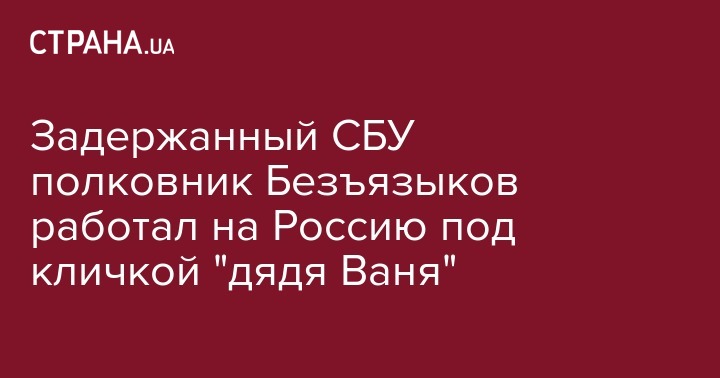 Задержанный СБУ полковник Безъязыков работал на Россию под кличкой "дядя Ваня"