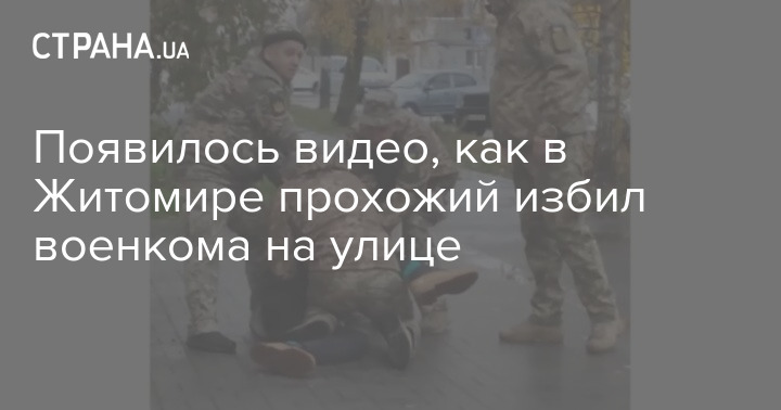В сети публикуют видео, как в Житомире молодой человек на улице избил военкома. Судя по кадрам бил он руками и коленом.