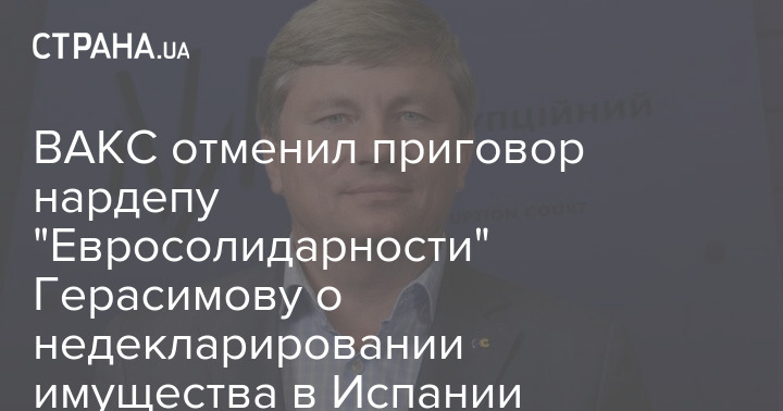 17 августа ВАКС признал Герасимова виновным. Нардепа обвинили в том, что он не внес в исправленную декларацию за 2020 год сведения о принадлежащих ему и его жене двухэтажном жилом помещении и паркоместе, расположенных в Испании, общей стоимостью 252 тысячи евро, а также о наличии денежных активов в размере 1 657 долларов, размещённых на счетах в одном из украинских банков. Теперь это решение отменено.
