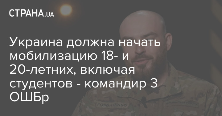 Украина должна начать мобилизацию 18- и 20-летних, включая студентов. Об этом сообщил командир 1 штурмового батальона 3 ОШБр Петр Горбатенко ("Ролло") в интервью Натальи Мосейчук.
