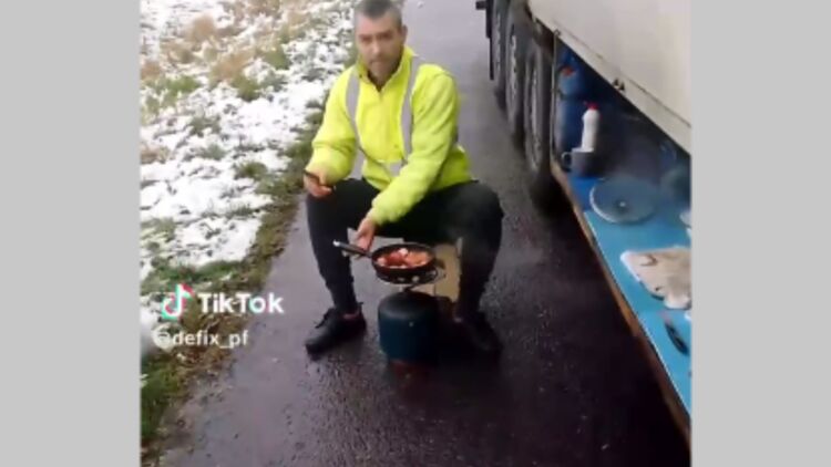 Также на кадрах можно заметить, что некоторые водители готовят еду буквально на газовых горелках рядом с фурами.