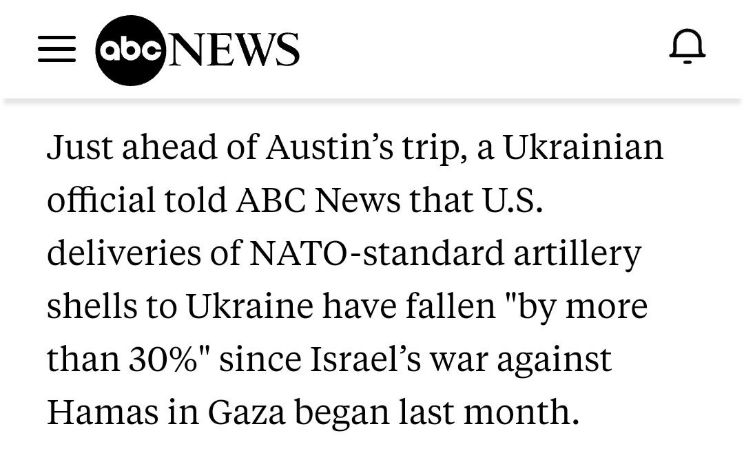 Представитель Пентагона заявил изданию, что сокращение боеприпасов для Киева "не имеет абсолютно никакого отношения к тому, что происходит в секторе Газа".