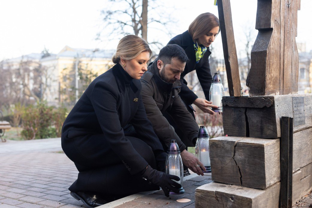 Владимир и Елена Зеленские вместе с Майей Санду установили лампадки у креста на Аллее Героев Небесной Сотни в Киеве. Также почтили память павших у их портретов. В честь погибших участников Революции достоинства прозвучали удары колокола.