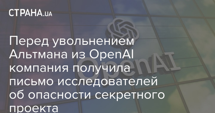 Cовет директоров компании OpenAI перед решением уволить Сэма Альтмана с поста гендиректора получил письмо от исследователей с предупреждением об опасном открытии.